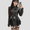 Abito Donna in Pelle Nera Stile Grunge