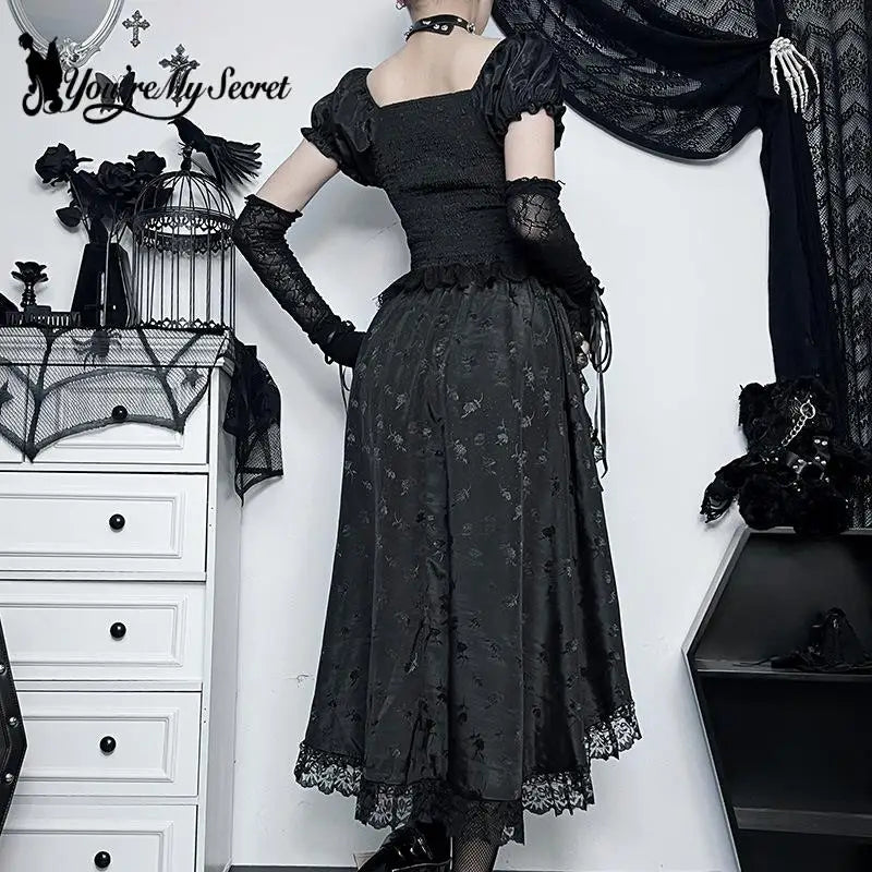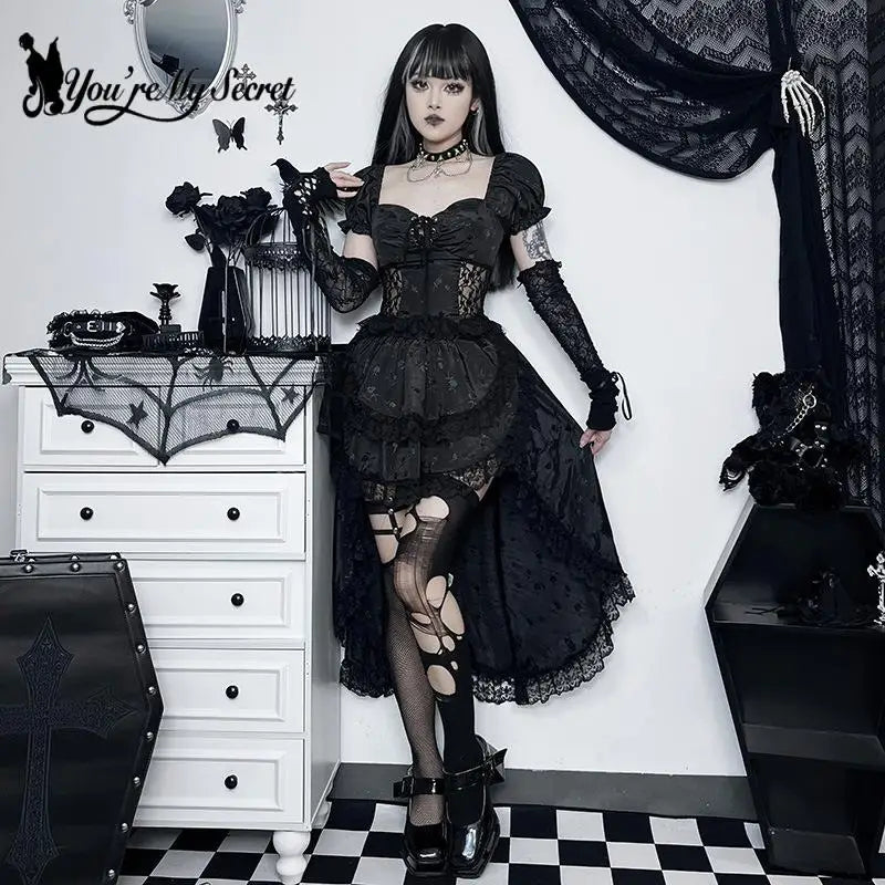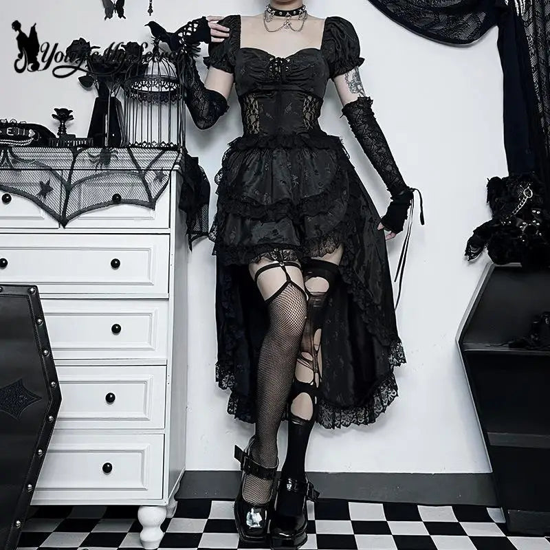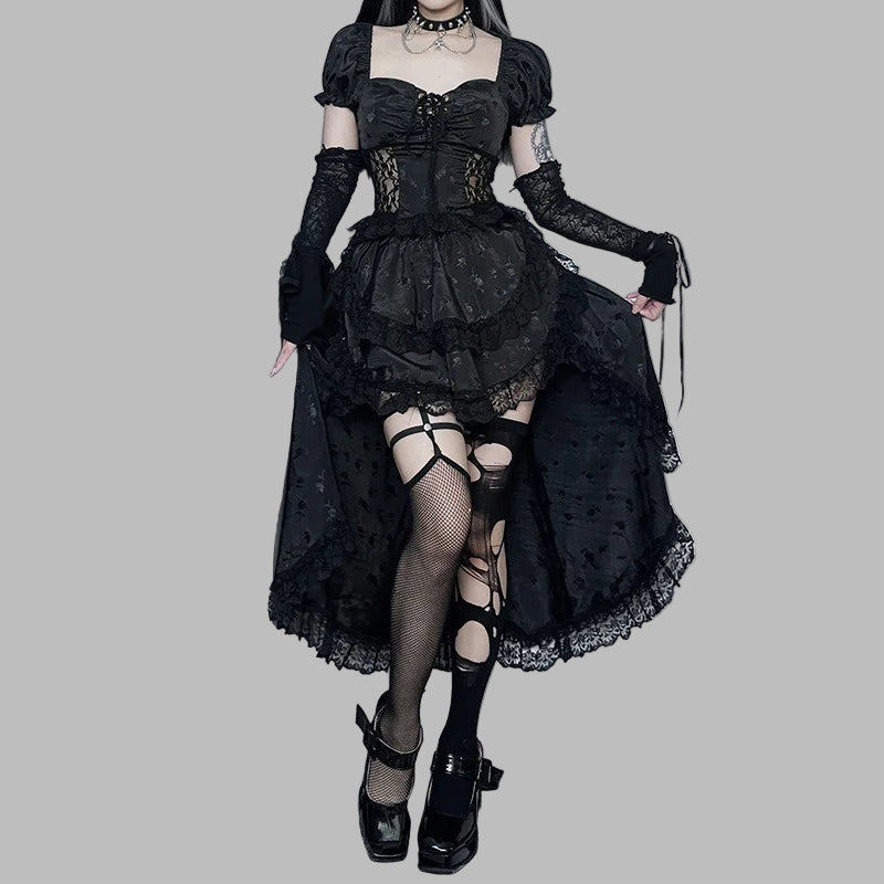 Abito Gotico Punk Nero Asimmetrico in Pizzo