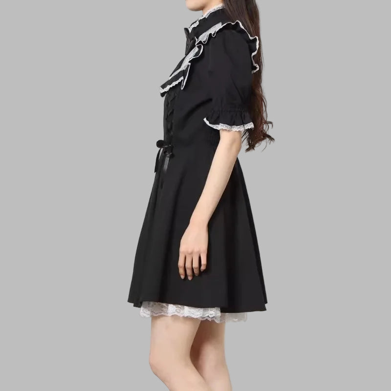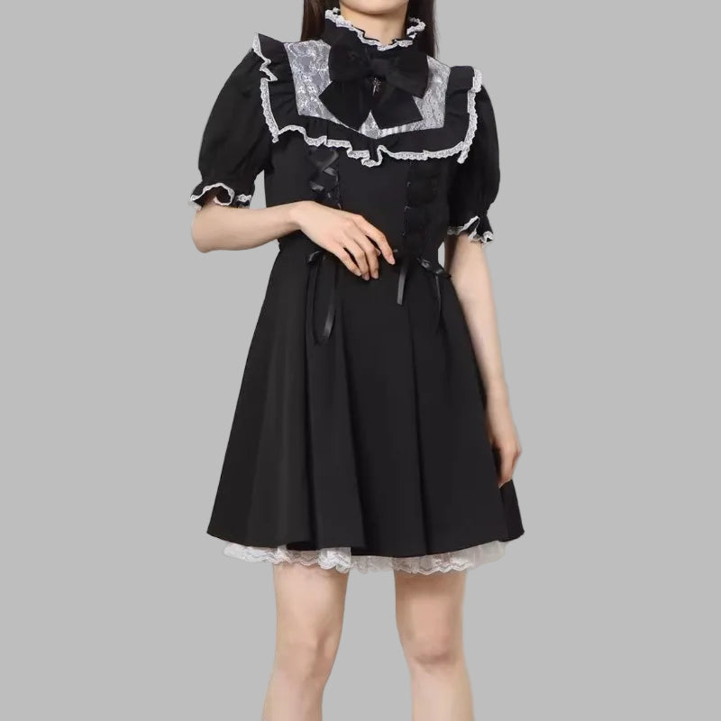 Abito Jirai Kei Nero con Fiocco di Pizzo e Lacci