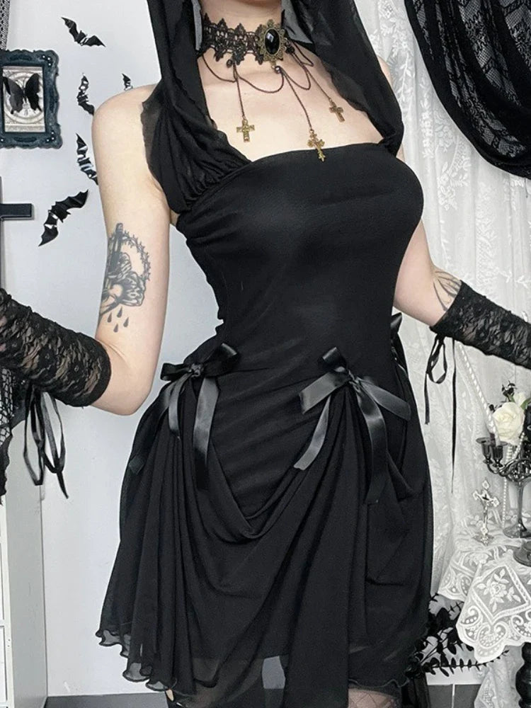Abito nero grunge con maniche lunghe e gonna drappeggiata Vedi opzioni