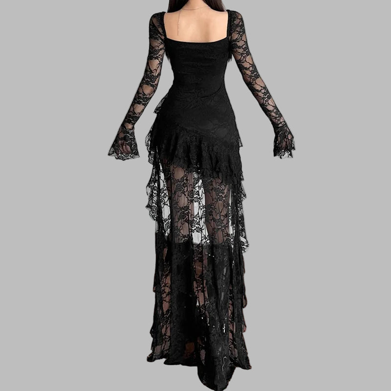 Abito Nero Rock con Pizzo e Orlo Asimmetrico Vedi opzioni