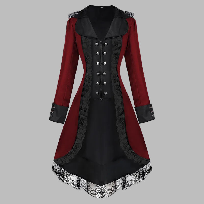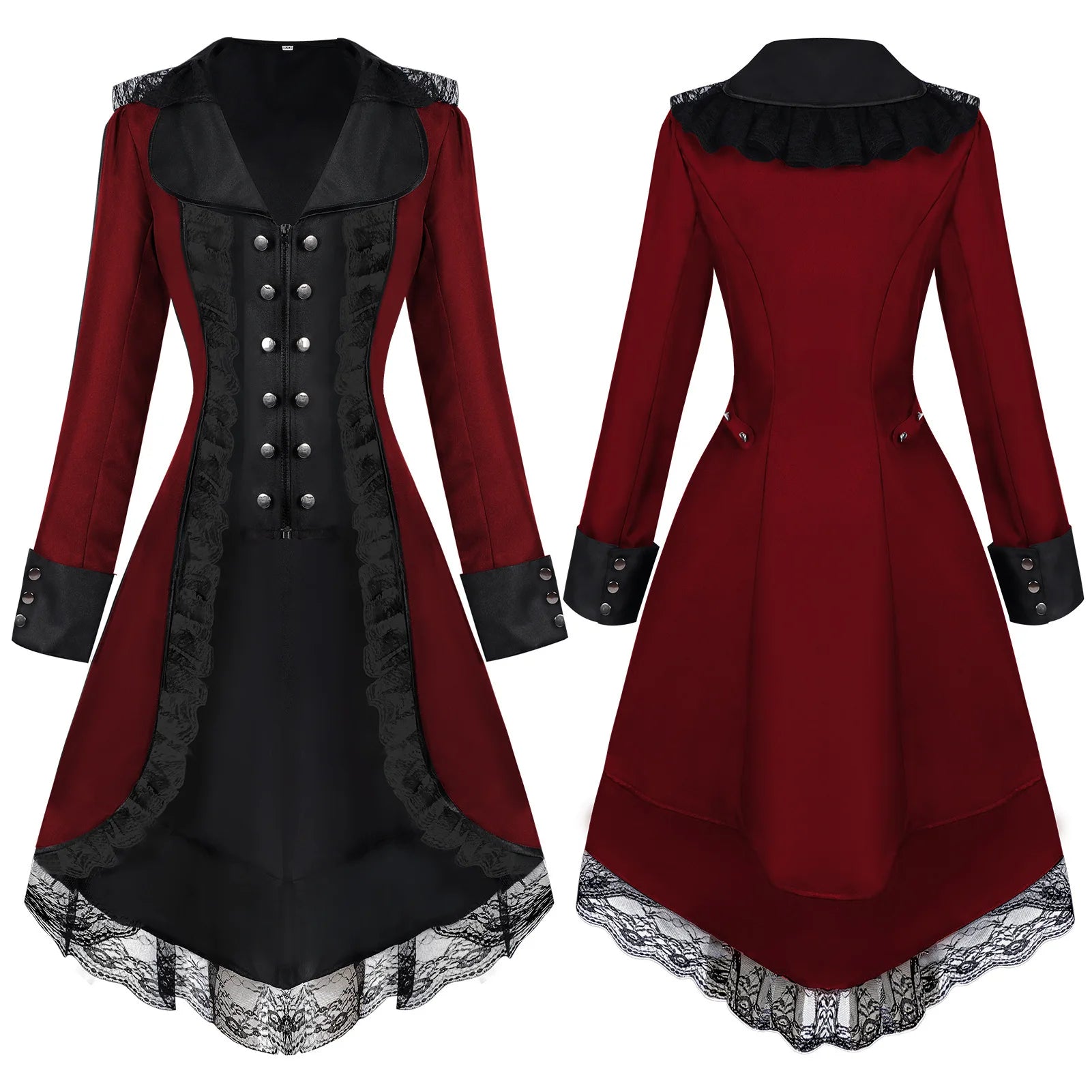 Abito Steampunk Bordeaux con Corsetto Nero e Pizzo