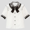 Blusa Gotica Kawaii Jirai Kei Bianca con Pizzo e Fiocco a Contrasto