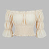 Blusa Lolita con Maniche a Sbuffo e Orlo Arricciato Crema