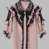 Blusa Lolita Rosa con Volant e Pizzo a Contrasto