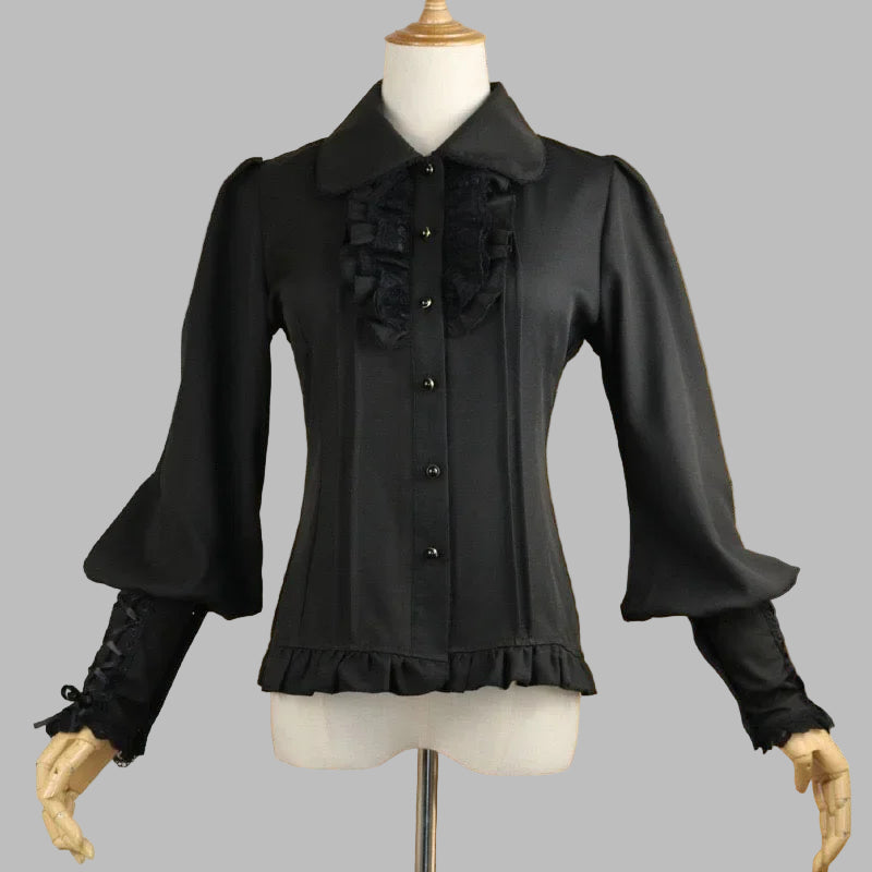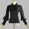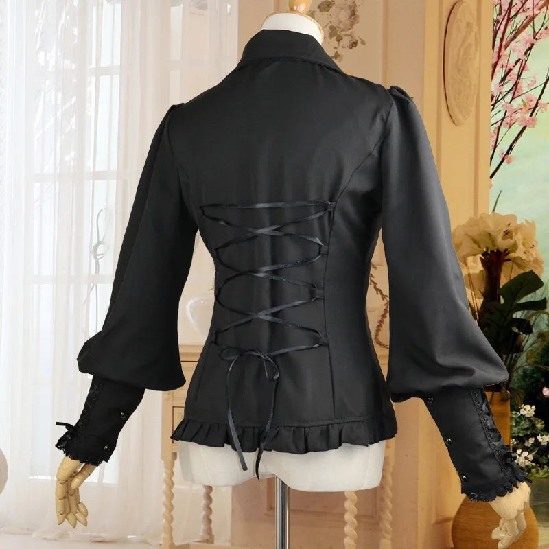 Blusa Nera Stile Metal con Volant e Lacci sulle Maniche