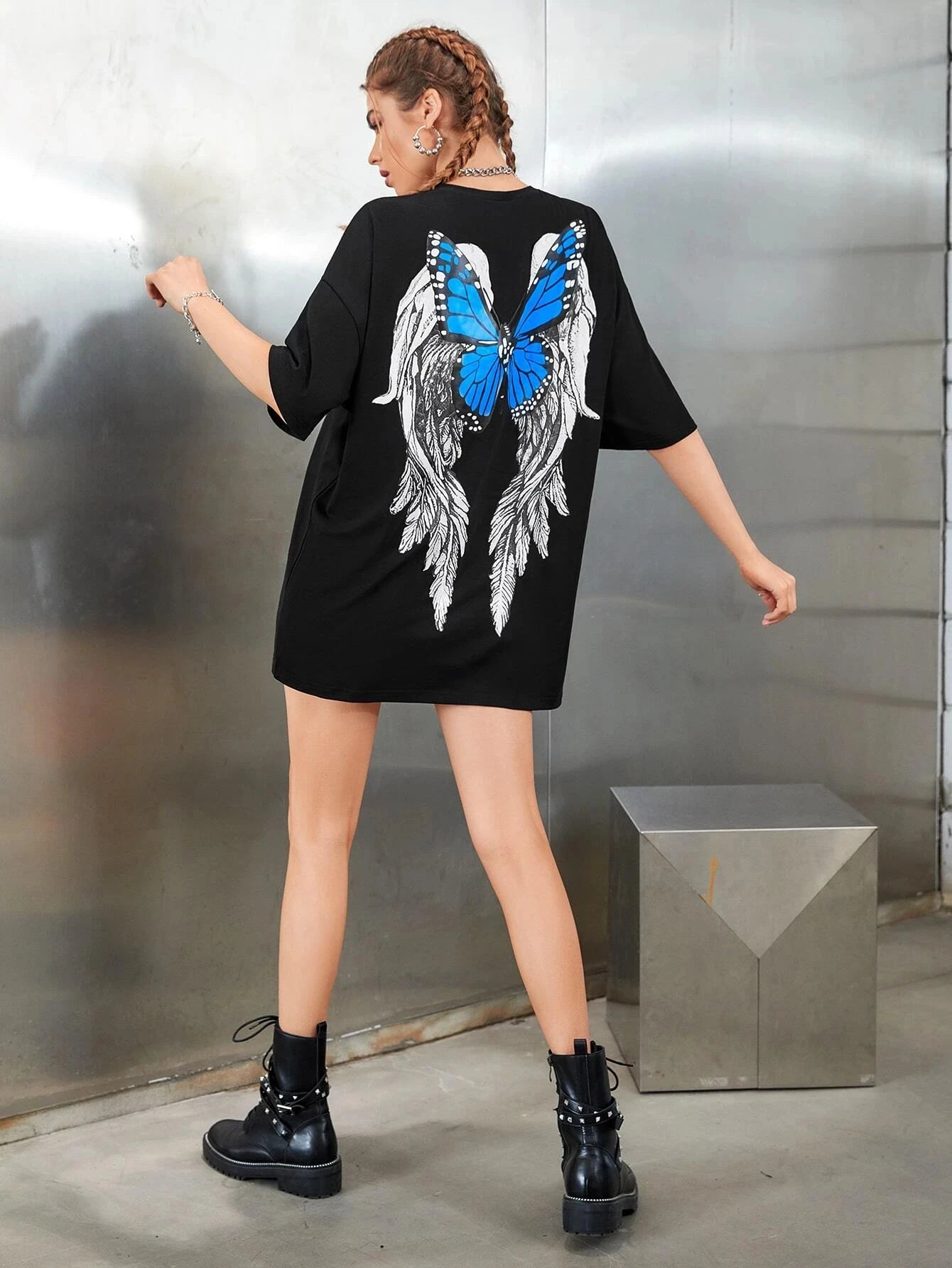 Blusa Oversize Donna Gothic Rock Azzurra con Ali di Farfalla Vedi opzioni