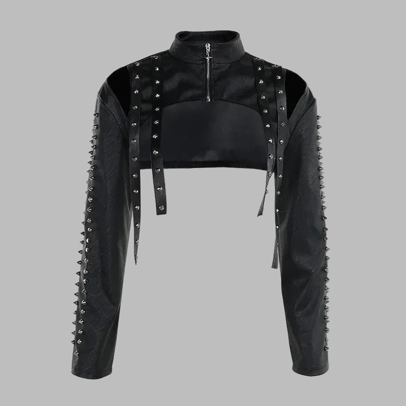 Bolero Gotico Punk in Pelle Nera con Borchie e Punte