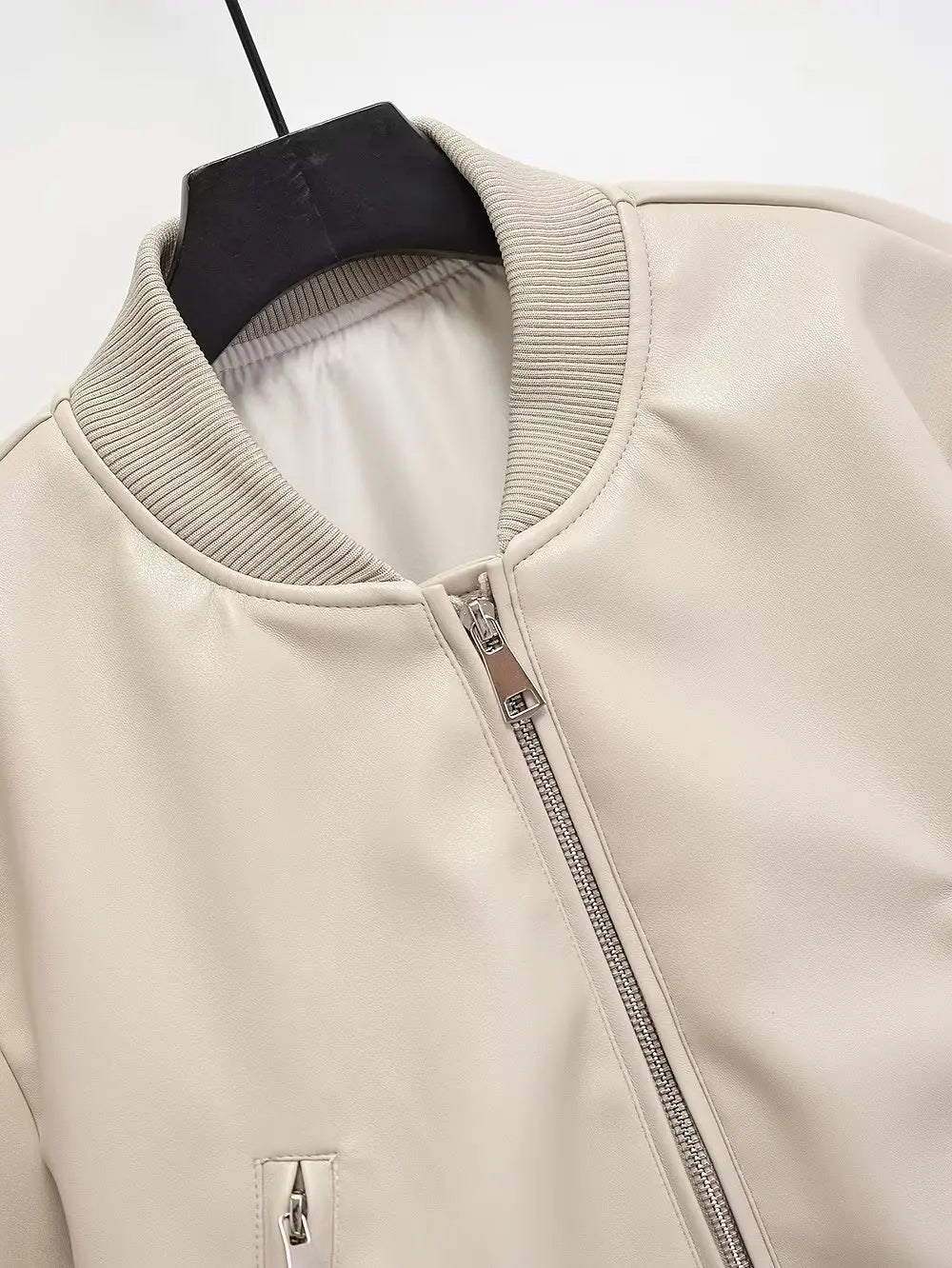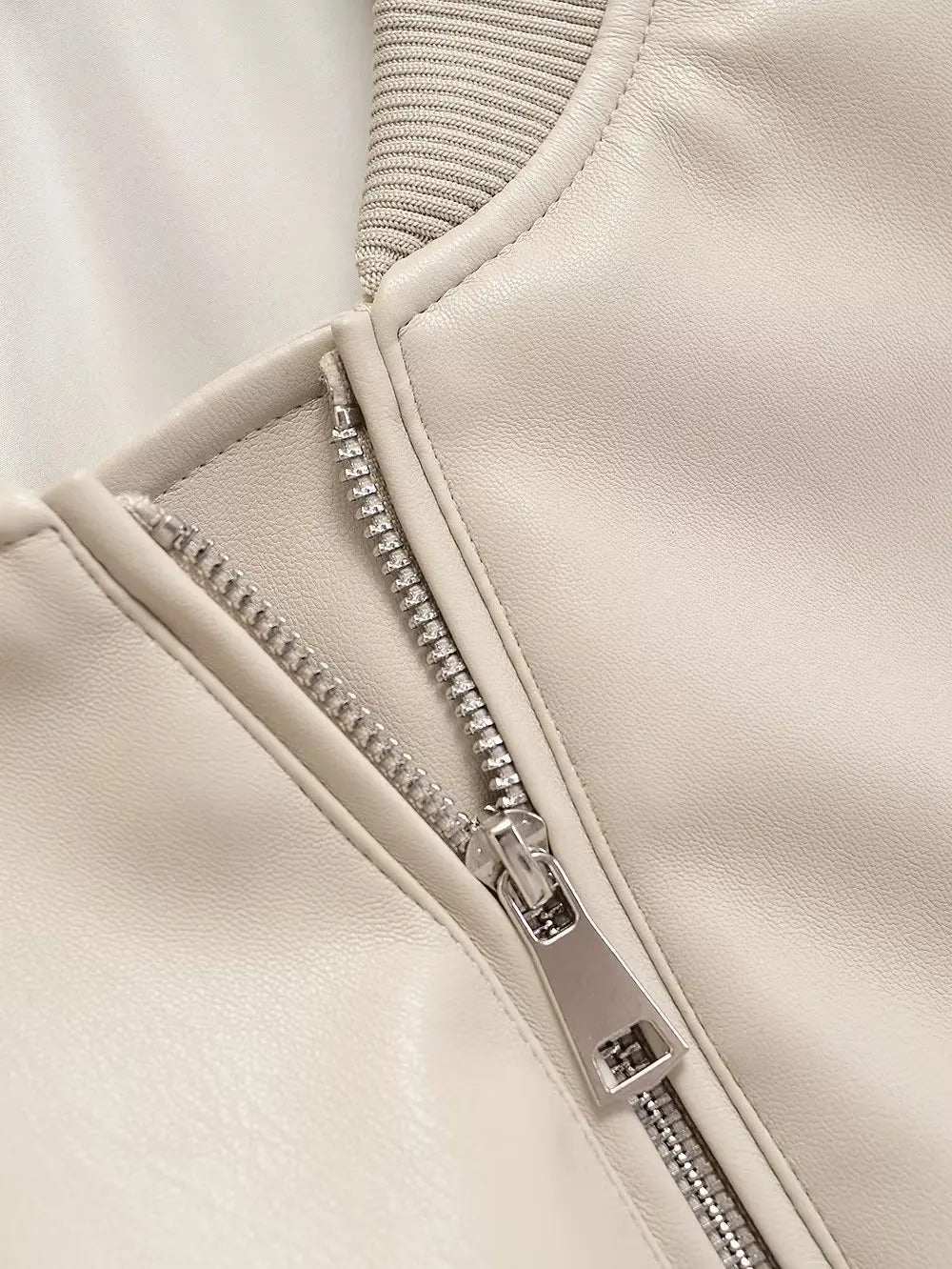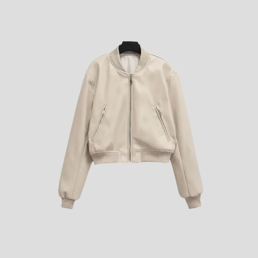 Bomber Beige Punk Rock con Zip e Polsini Elasticizzati