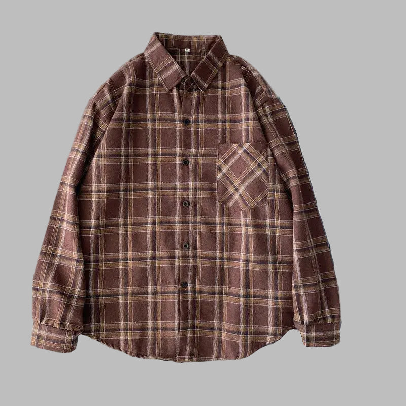 Camicia di Flanella a Quadri Punk Rock Marrone con Tasca