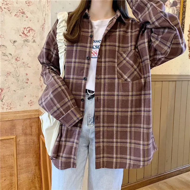 Camicia di Flanella a Quadri Punk Rock Marrone con Tasca Vedi opzioni