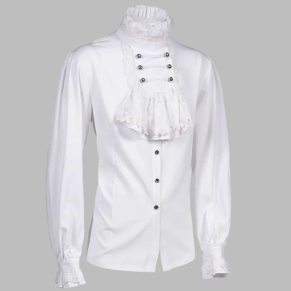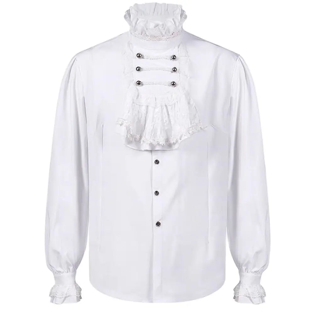 Camicia Gotica da Uomo Bianca con Jabot in Pizzo