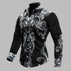 Camicia Nera a Maniche Lunghe con Motivi Ornamentali in Stile Metal