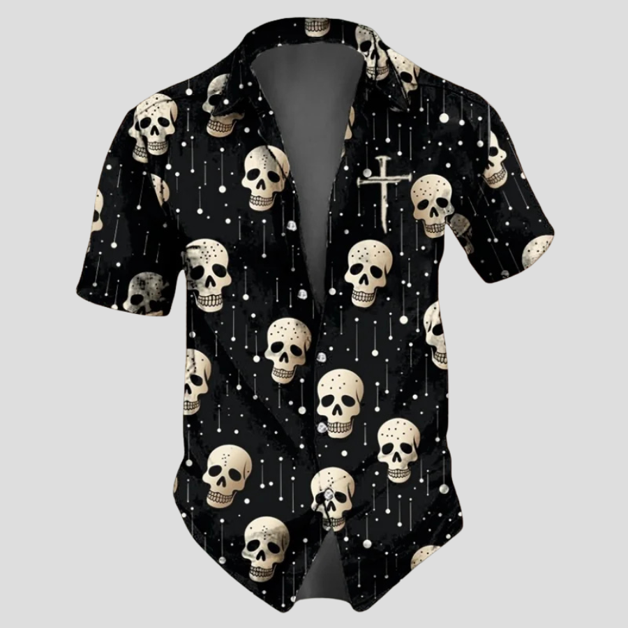 Camicia Punk Nera con Teschi e Croci a Maniche Corte