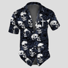 Camicia Rock con Teschi e Rose Manica Corta Nera