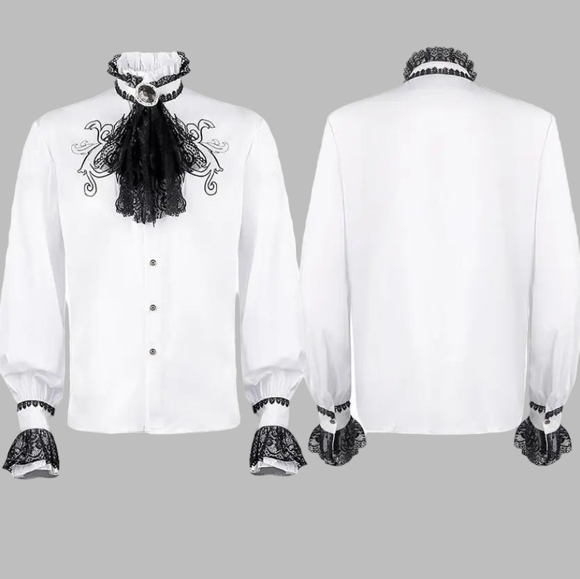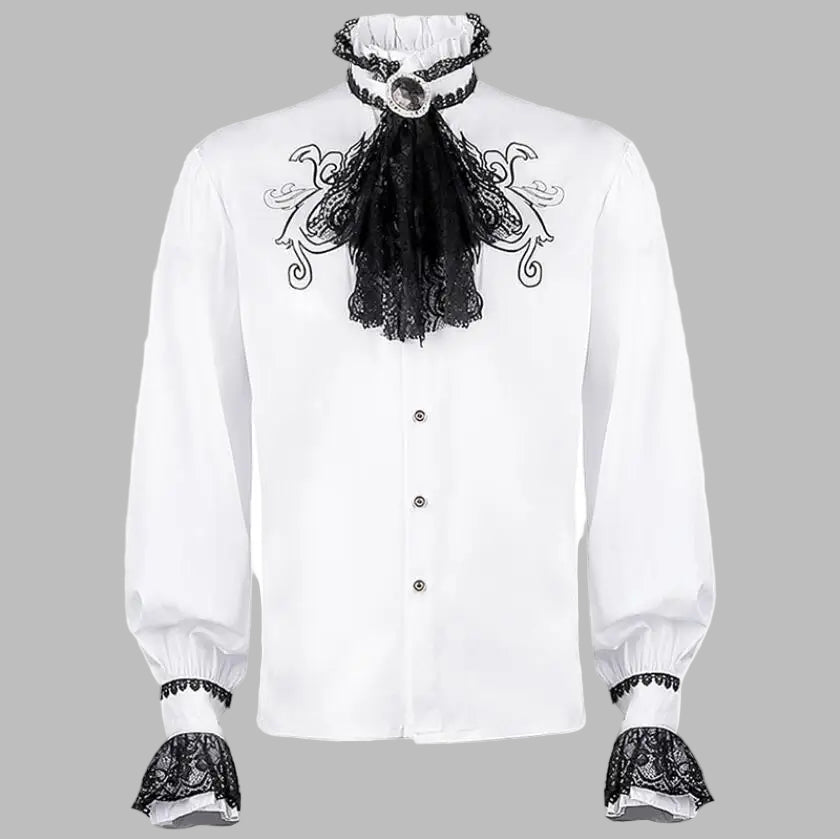Camicia Steampunk Bianca con Dettagli in Pizzo e Jabot