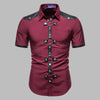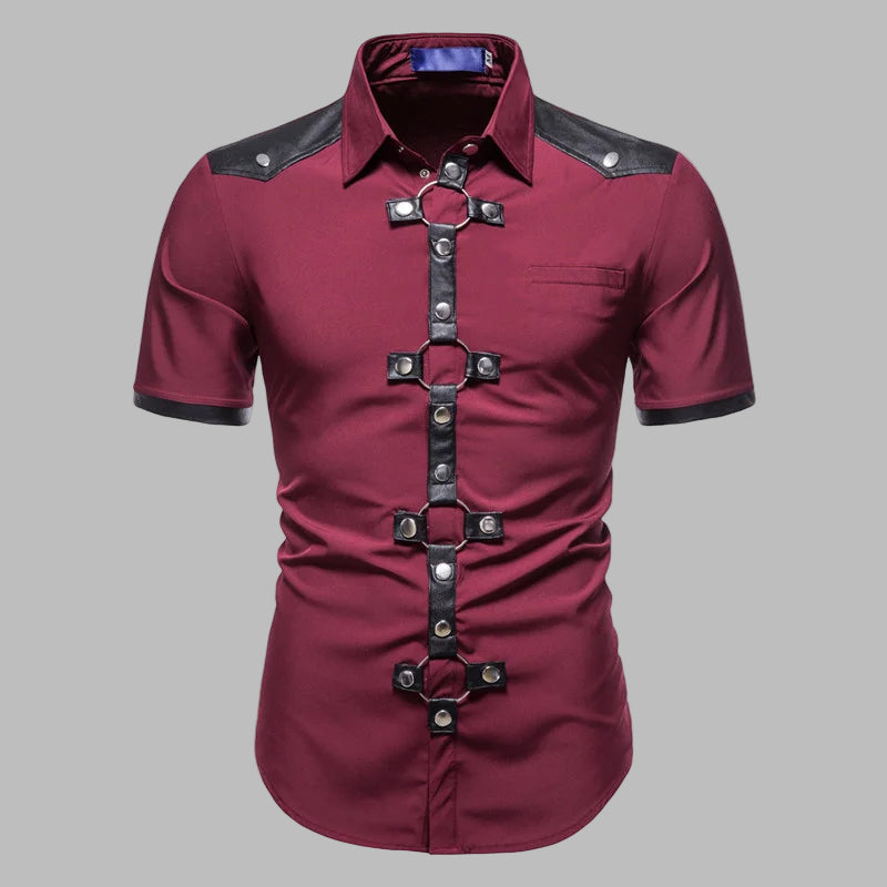 Camicia Steampunk con Cinghie in Pelle Bordeaux a Maniche Corte