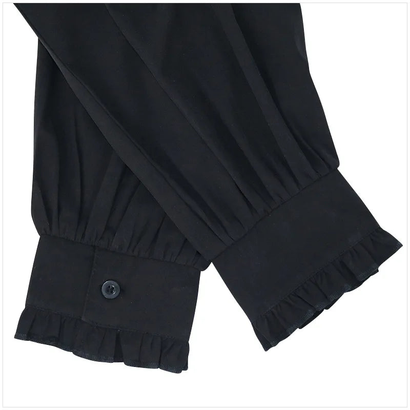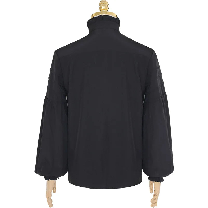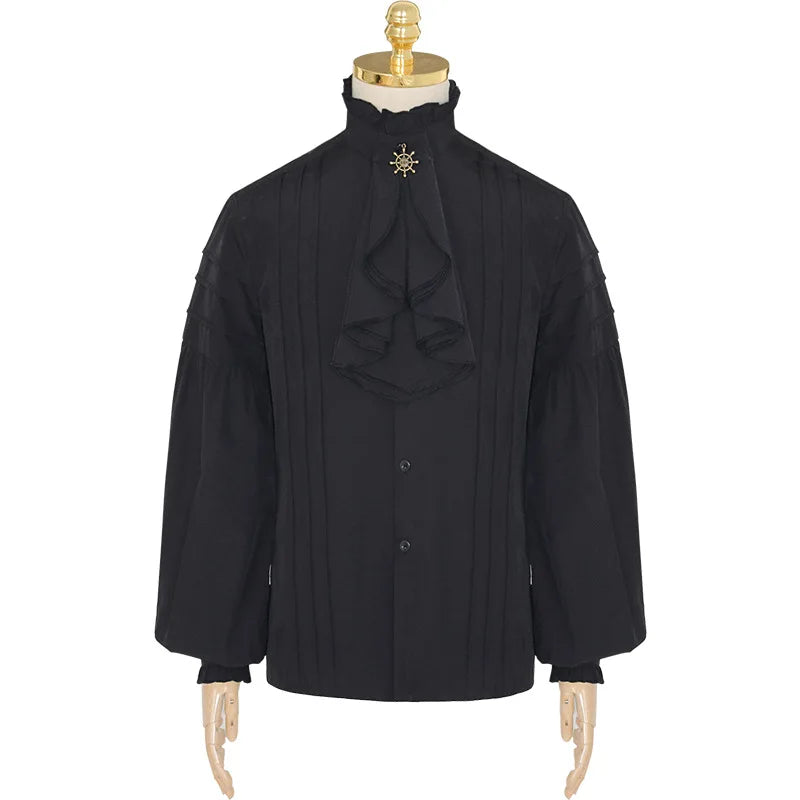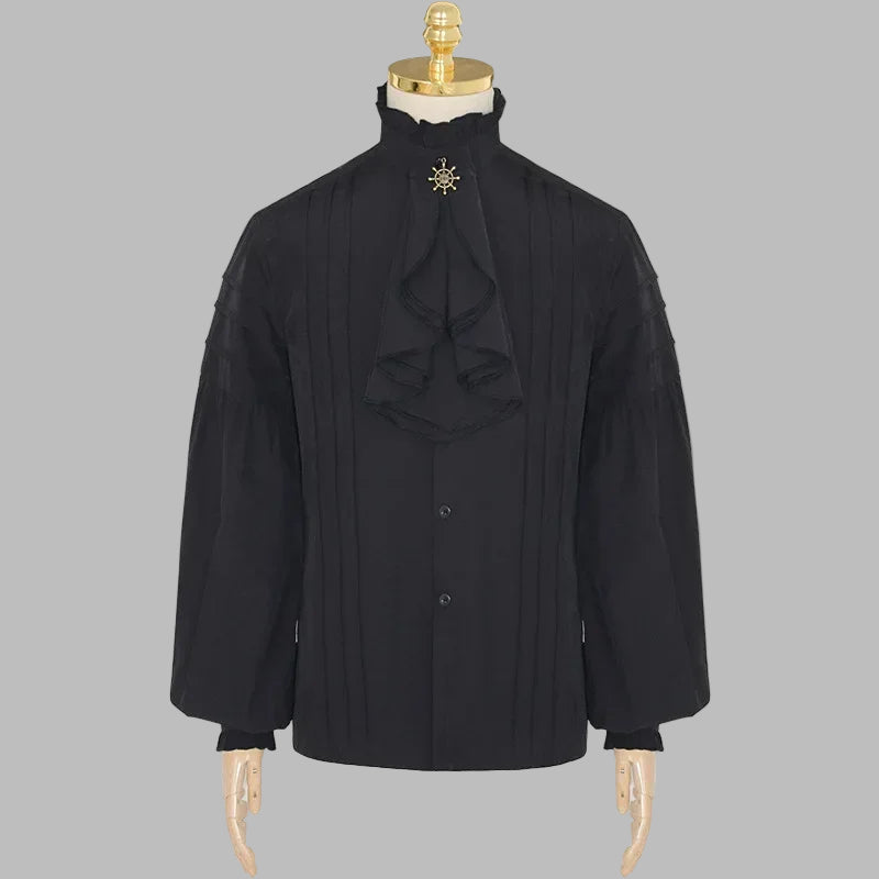 Camicia Steampunk Nera con Jabot e Spilla Dorata