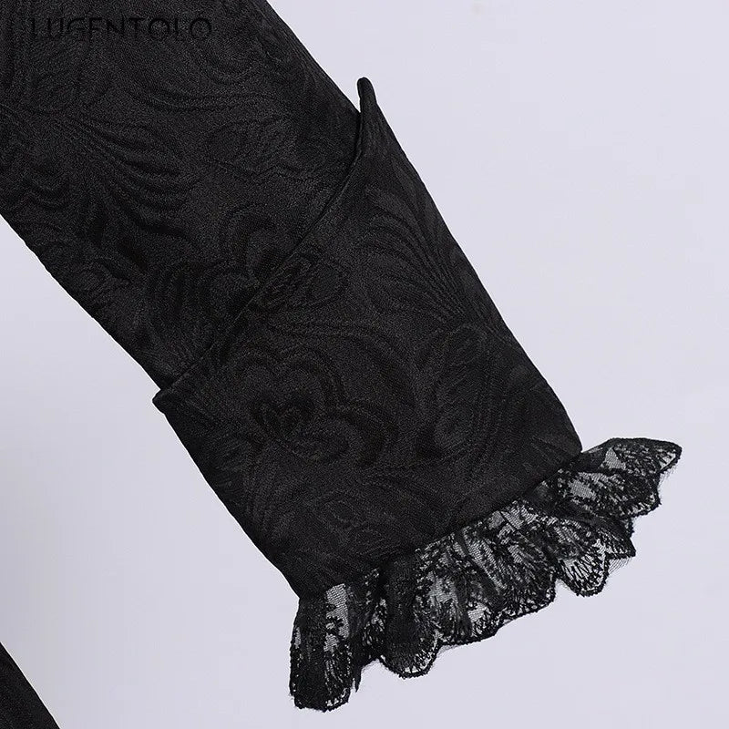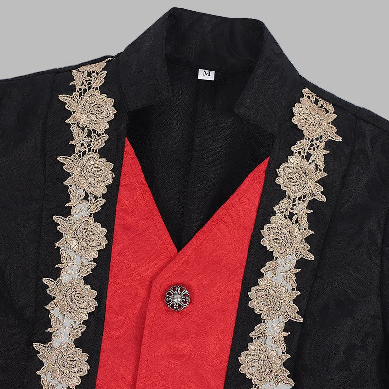 Cappotto Gotico Donna Nero con Inserto Rosso e Pizzo