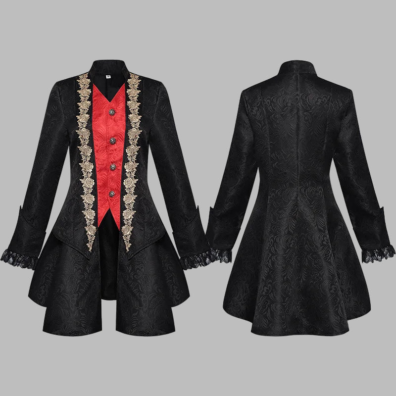 Cappotto Gotico Donna Nero con Inserto Rosso e Pizzo Vedi opzioni