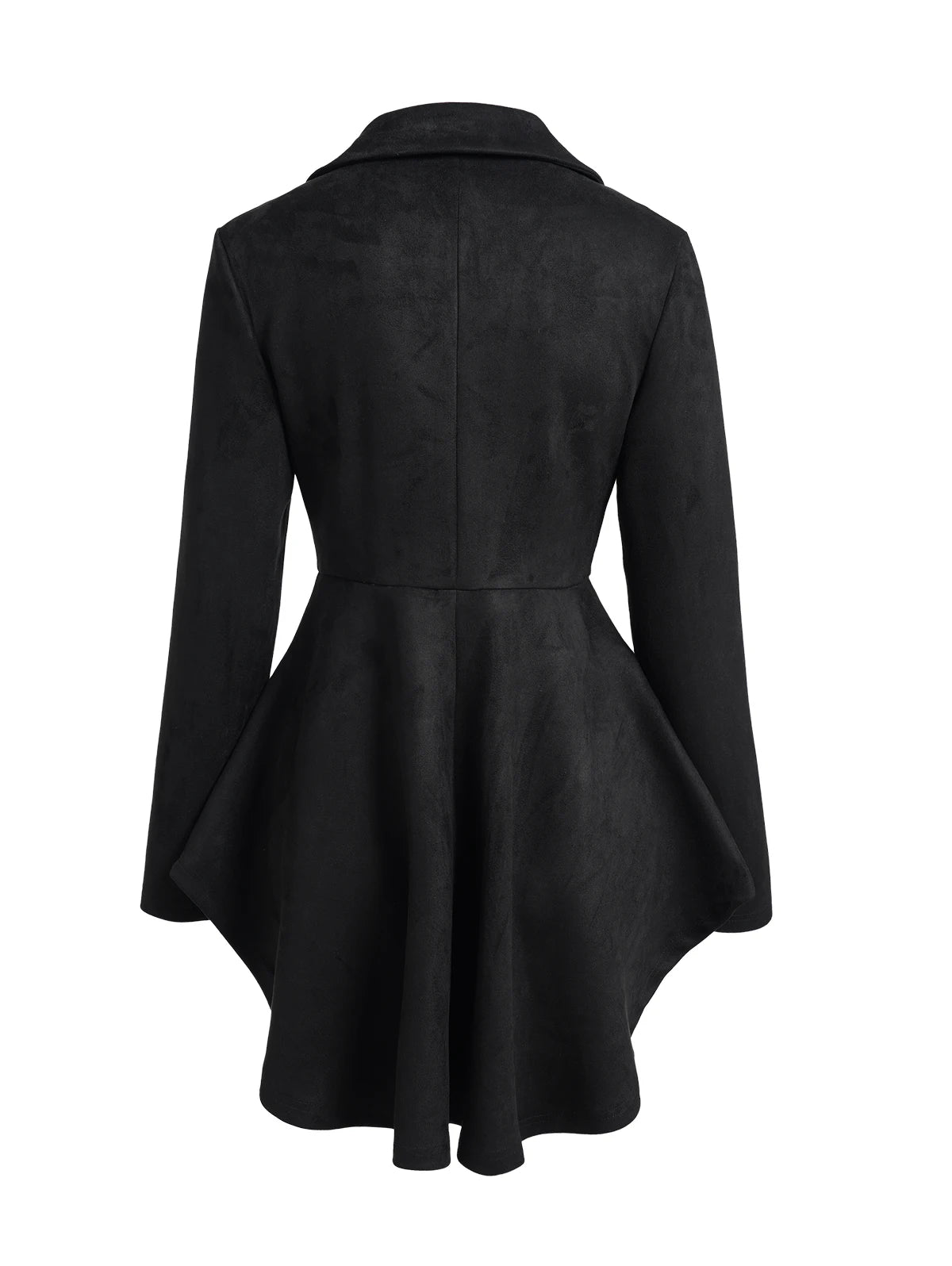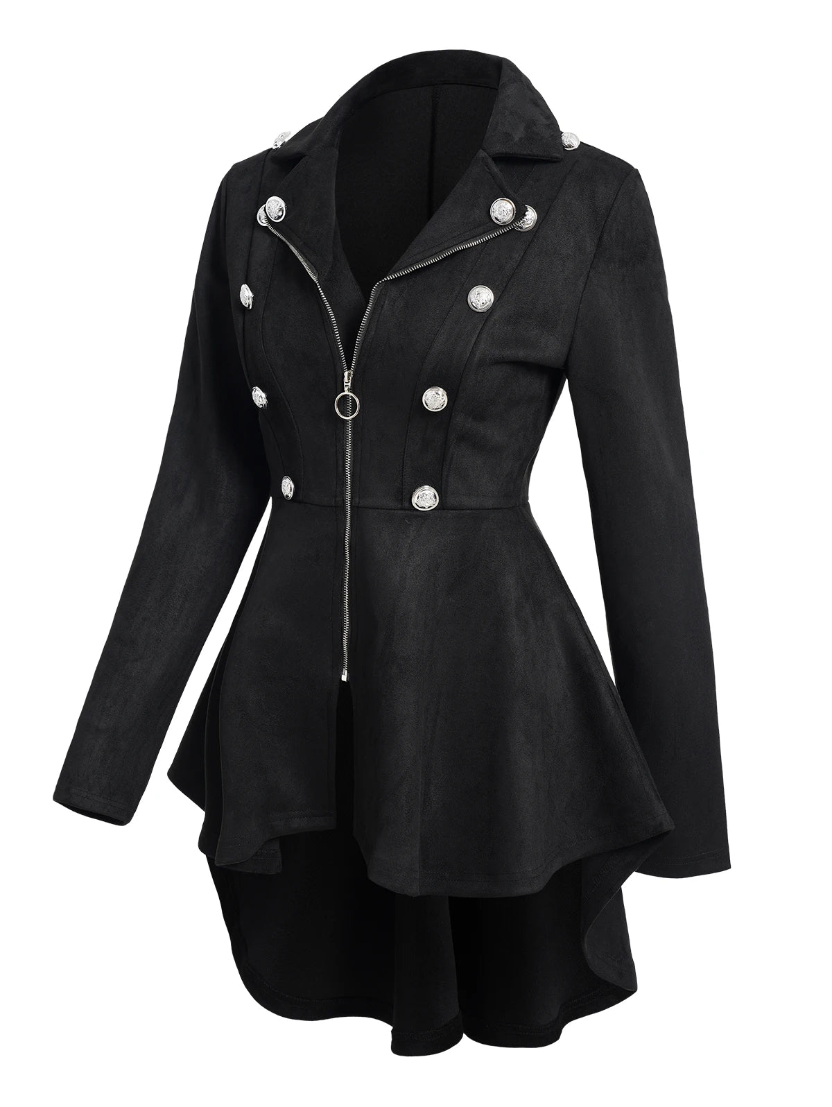 Cappotto gotico nero da donna svasato, con bottoni e cerniera Vedi opzioni