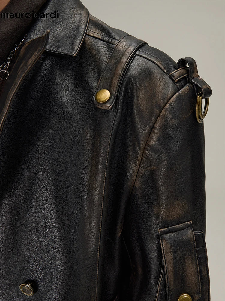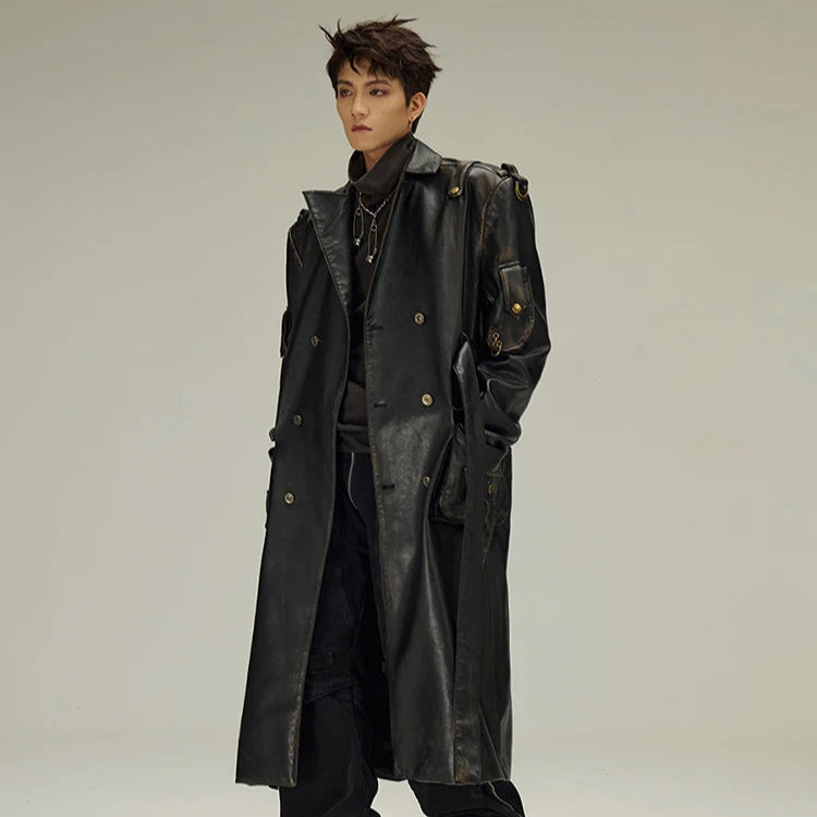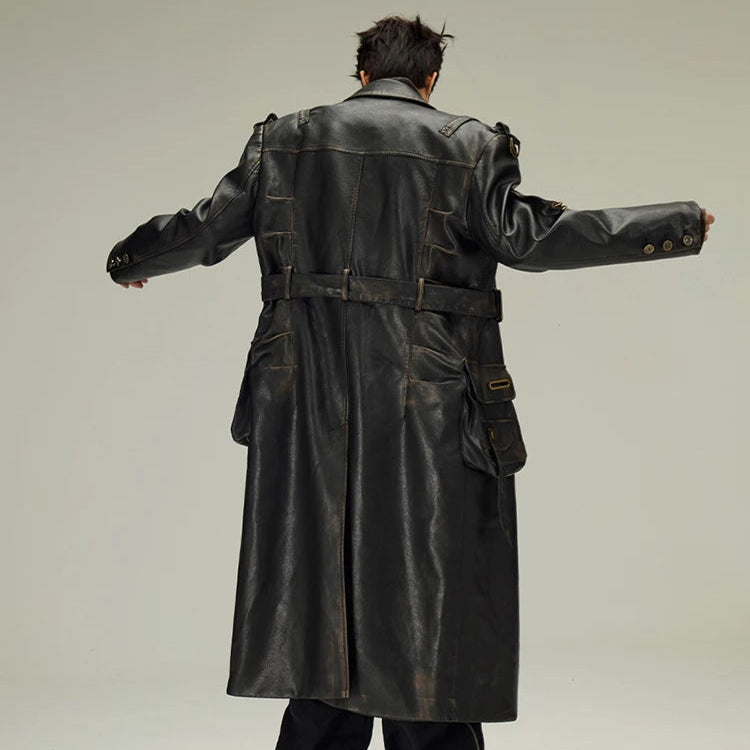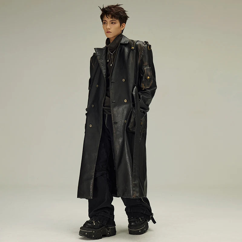 Cappotto Lungo in Pelle Nera Stile Gotico Alternativo
