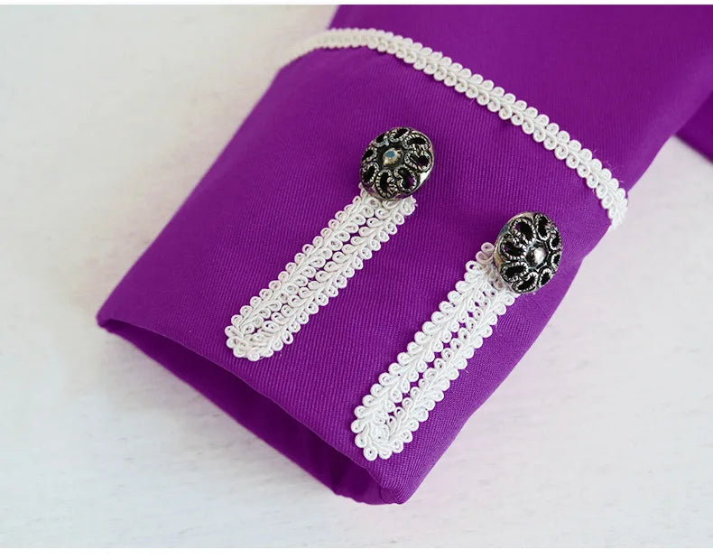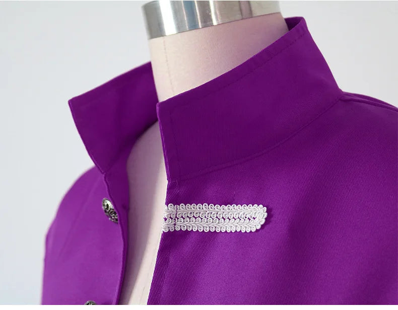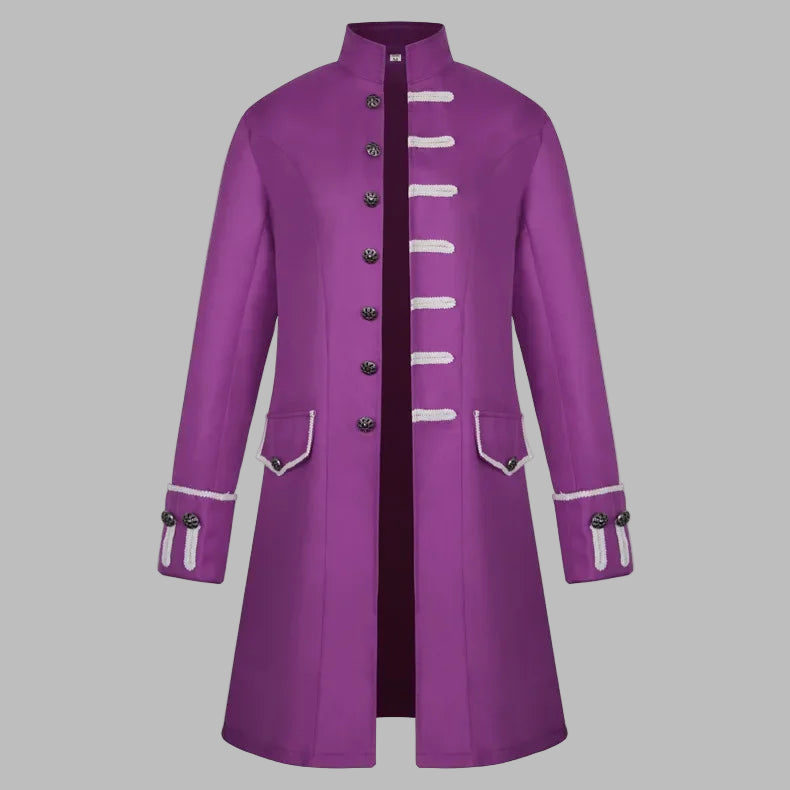 Cappotto Steampunk Viola con Corde Decorative Bianche da Uomo