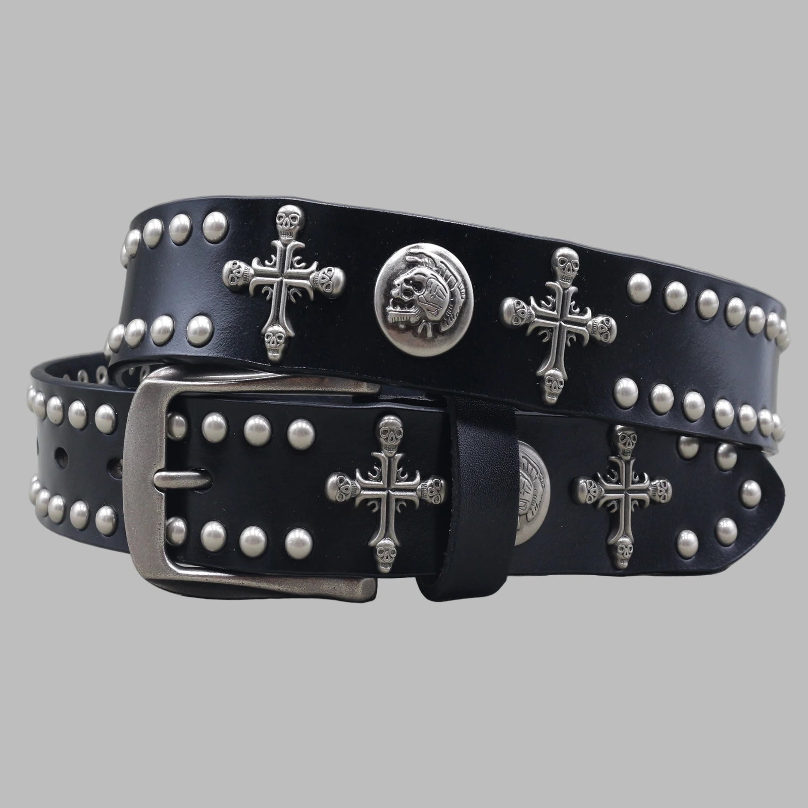 Cintura Nera con Croci e Borchie Stile Metal Rock