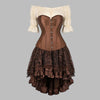 Completo Steampunk Corsetto con Camicetta e Gonna Asimmetrica Marrone 6XL