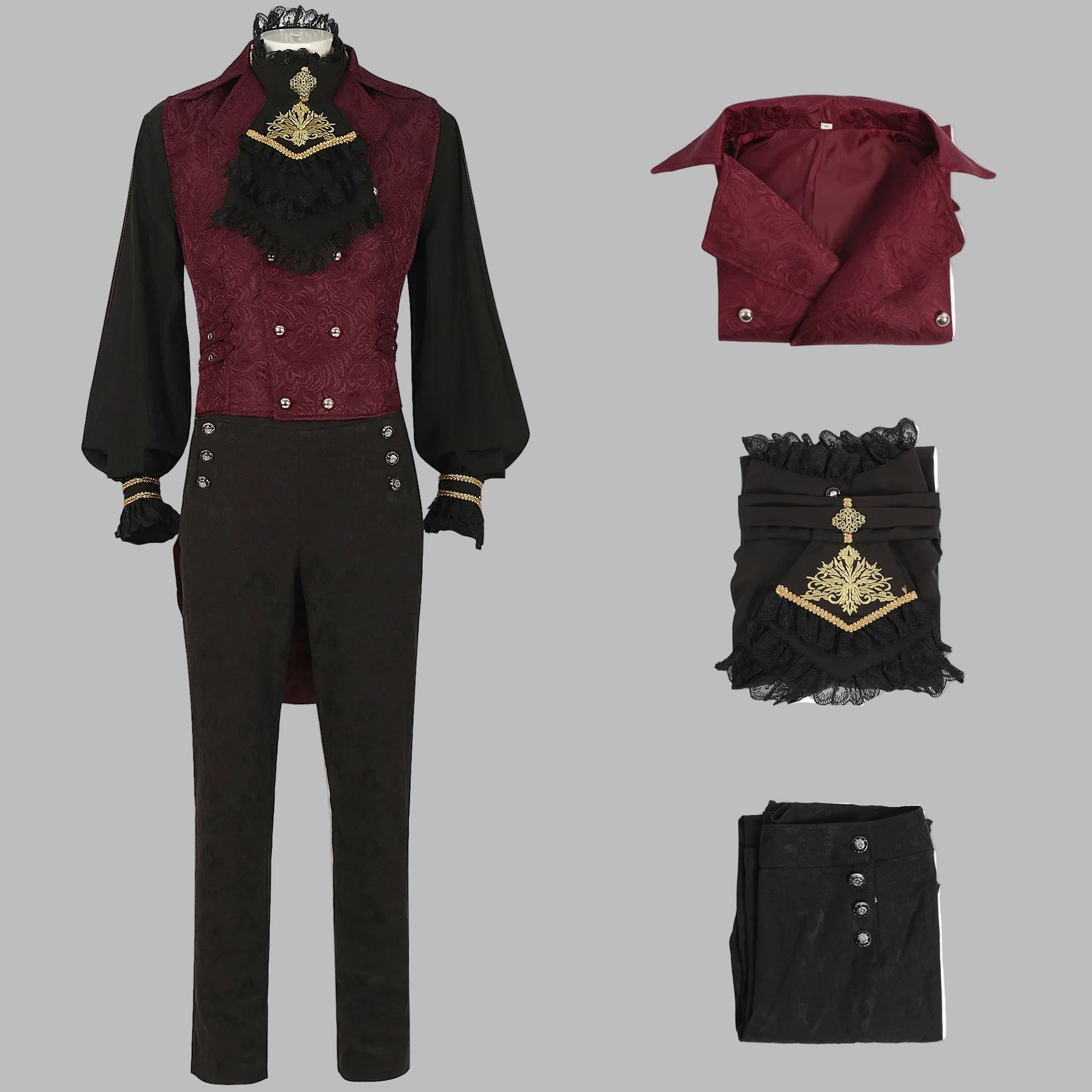 Completo Steampunk Uomo Bordeaux Nero con Pizzo Dettagli Dorati Vedi opzioni
