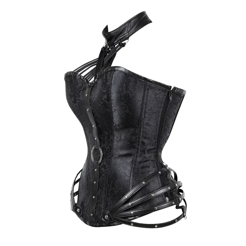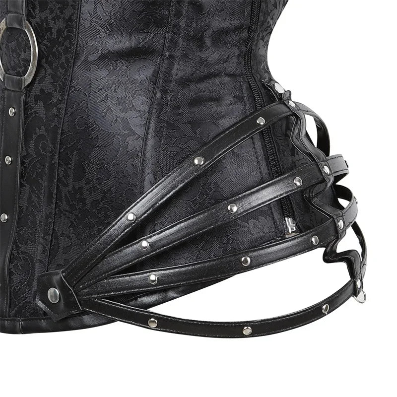 Corsetto gotico in metallo con cinghie e borchie nero punk rock