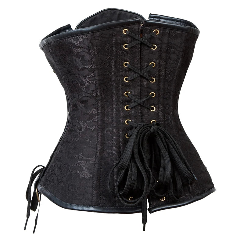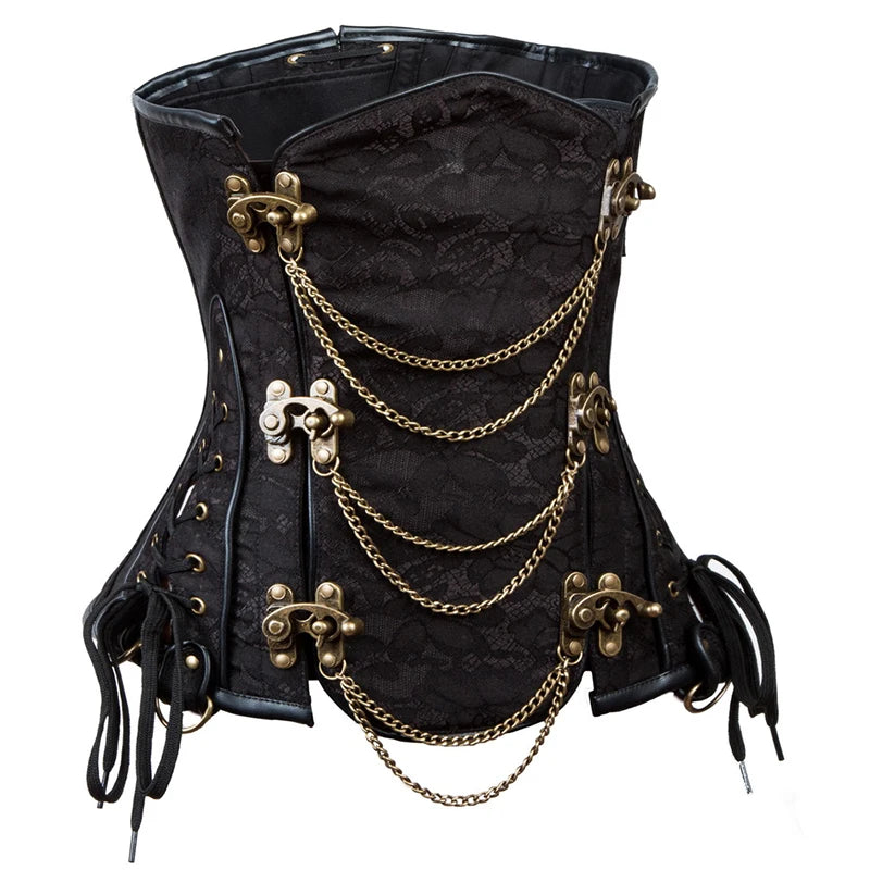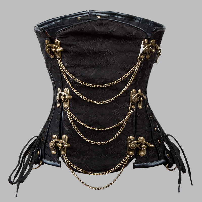 Corsetto gotico punk nero con catene fibbie dorate steampunk