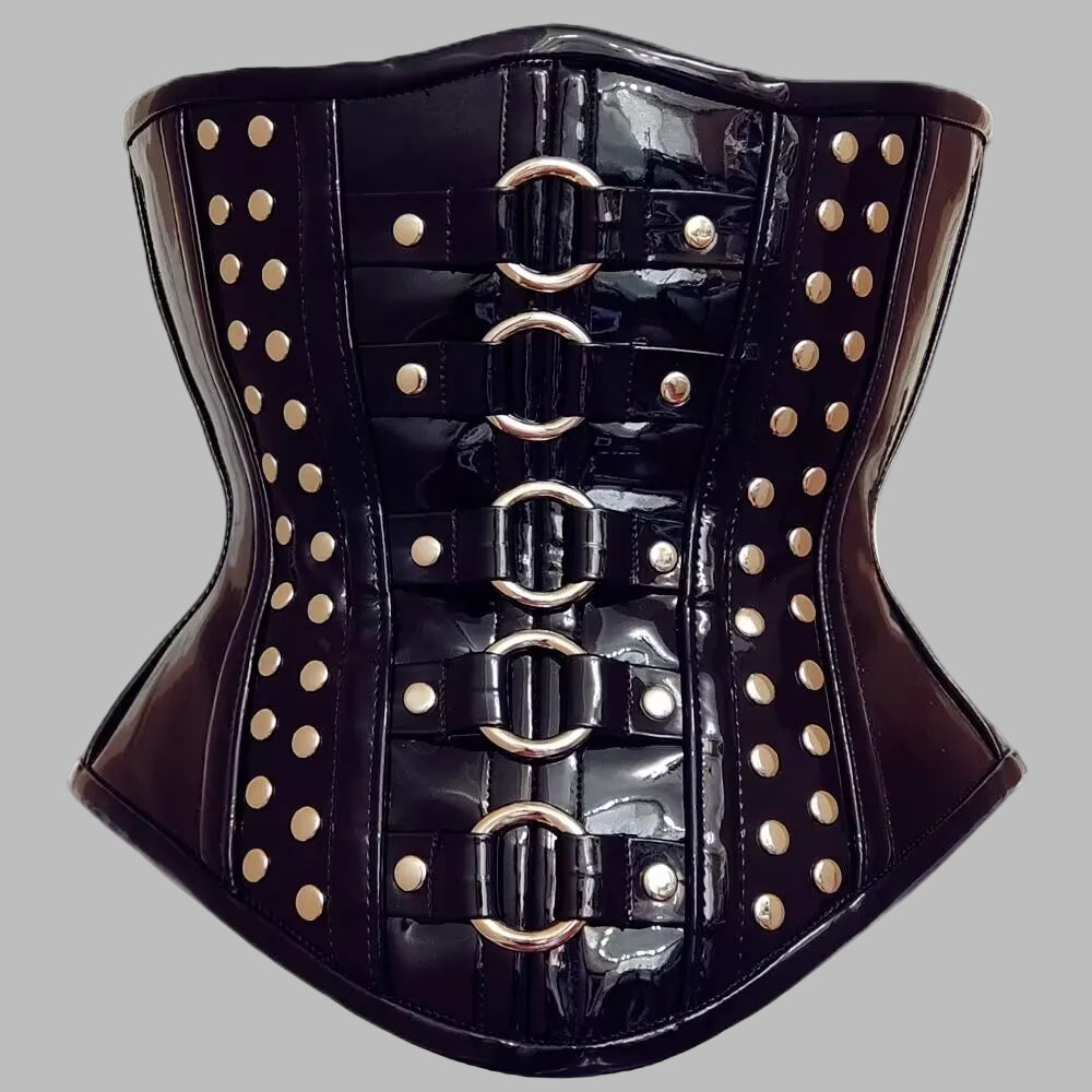 Corsetto Gotico Punk Nero con Fibbie e Borchie Metalliche