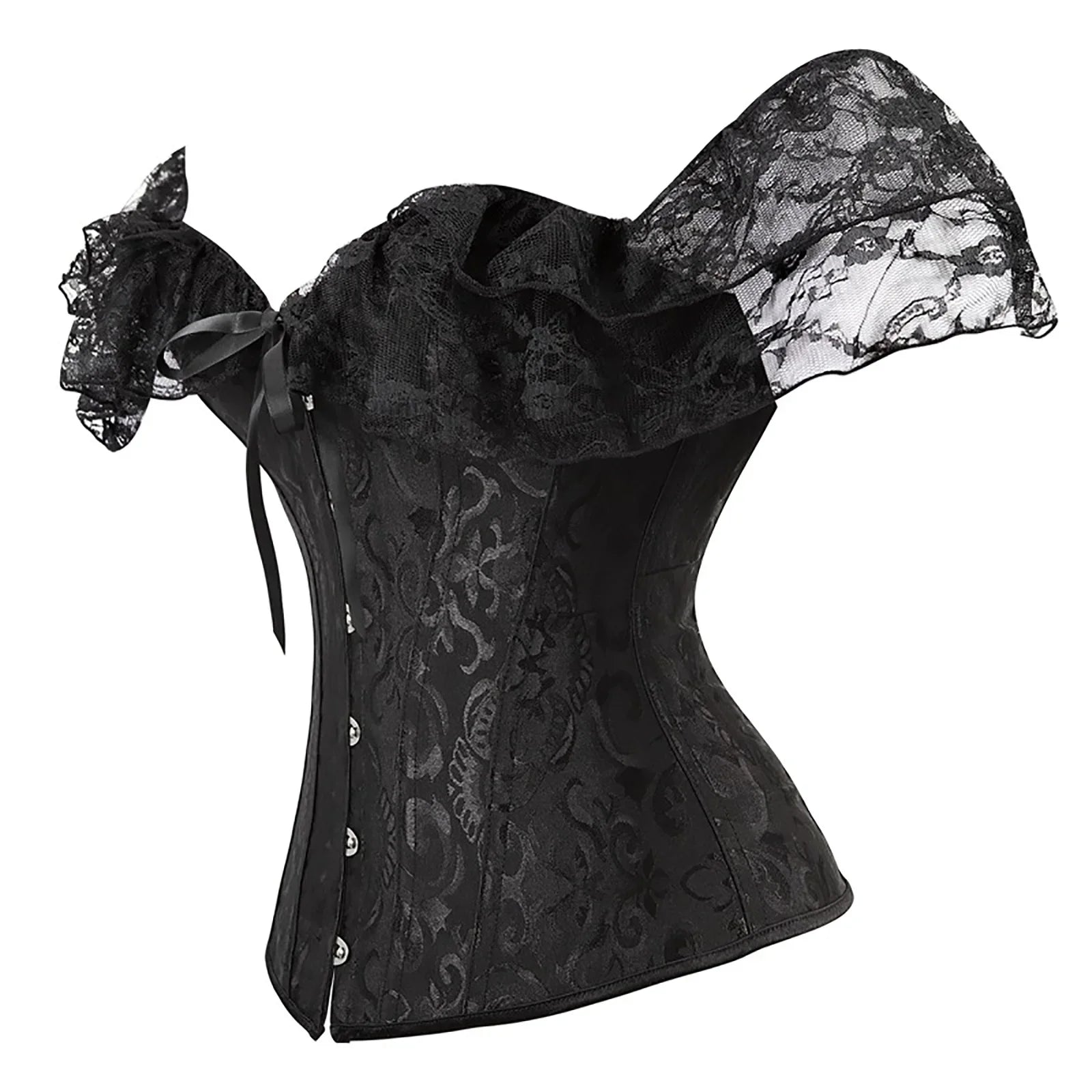 Corsetto Gotico Punk Rock Nero in Broccato con Maniche in Pizzo e Allacciatura Vedi opzioni