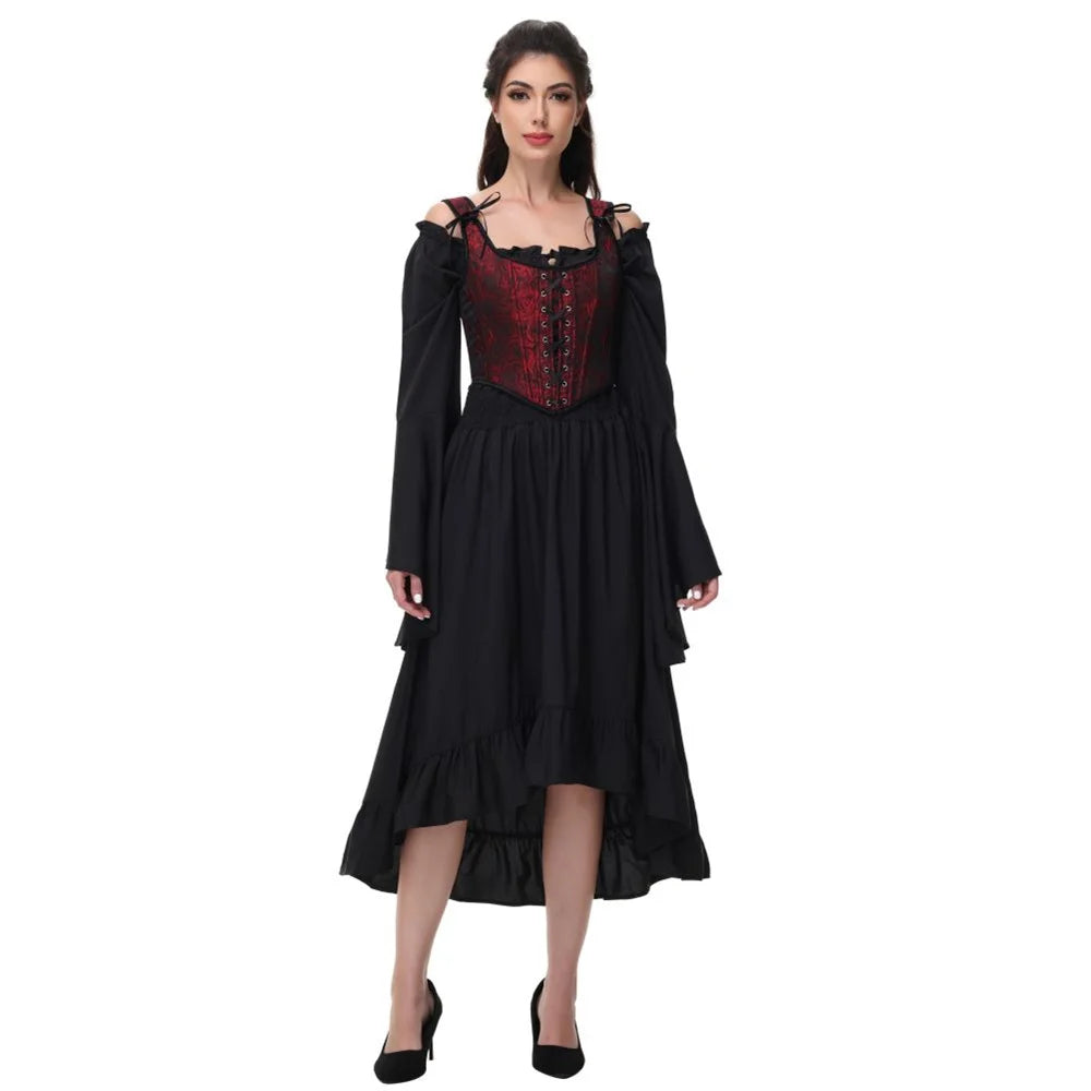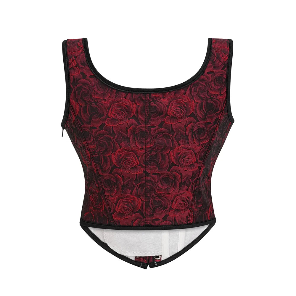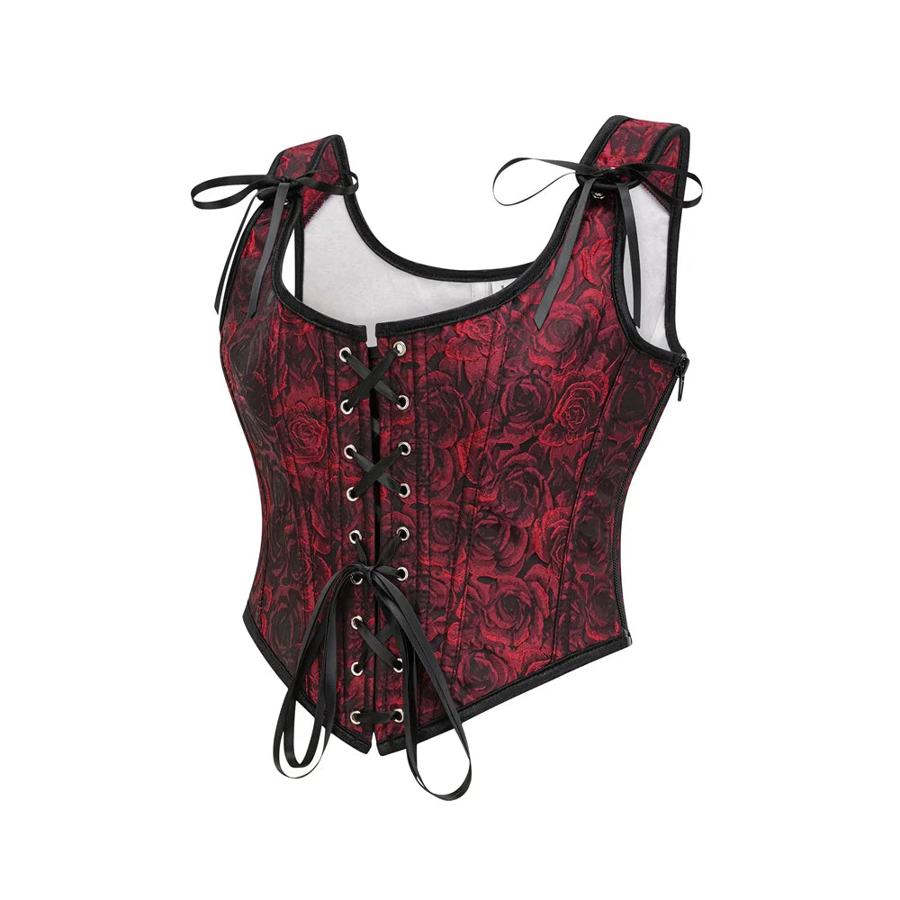 Corsetto gotico rosso e nero con lacci e rose con spalline Vedi opzioni