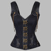 Corsetto gotico steampunk in pelle con catene e chiusure metalliche nero