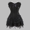 Corsetto gotico steampunk nero con fiocchi e balza in pizzo 6XL
