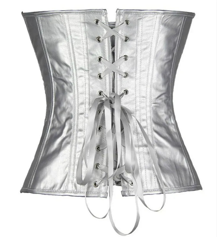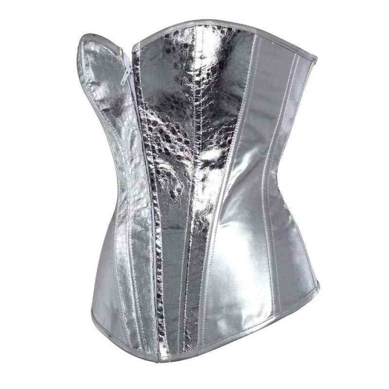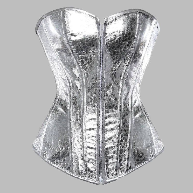Corsetto Argento Effetto Pelle di Serpente con Stecche Metal