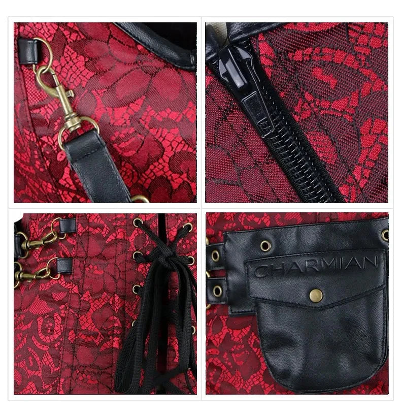 Corsetto Punk con Rete Rossa e Teschi Neri Vedi opzioni