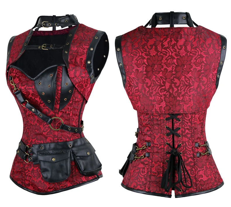 Corsetto Punk con Rete Rossa e Teschi Neri