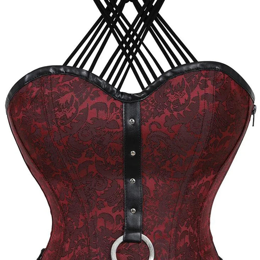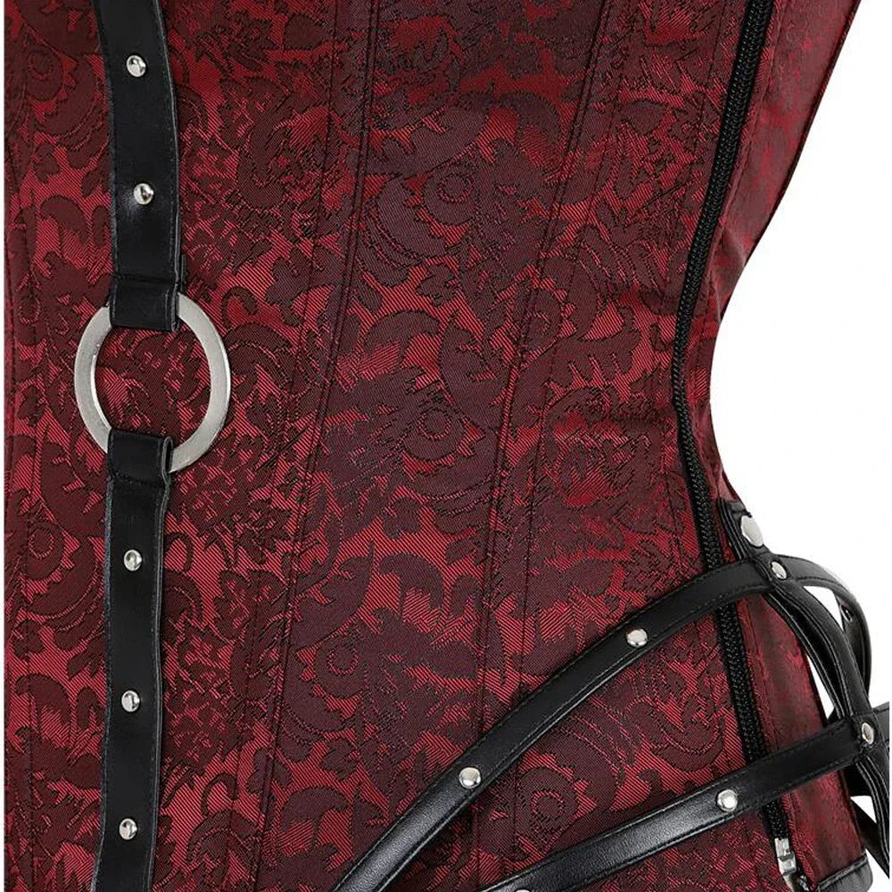 Corsetto Punk Rock con Cinghie e Fibbie Metalliche Bordeaux