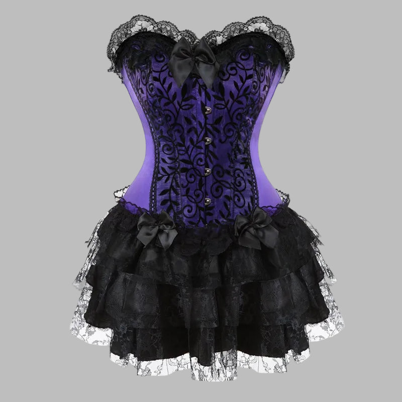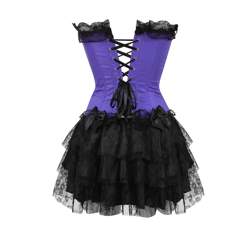 Corsetto Punk Rock Viola con Pizzo e Gonna Nera