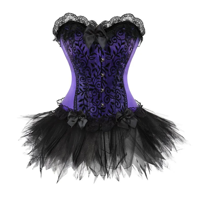 Corsetto Punk Rock Viola con Pizzo e Gonna Nera Vedi opzioni