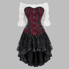 Corsetto Steampunk Bordeaux con Gonna Hi-Lo in Pizzo Nero