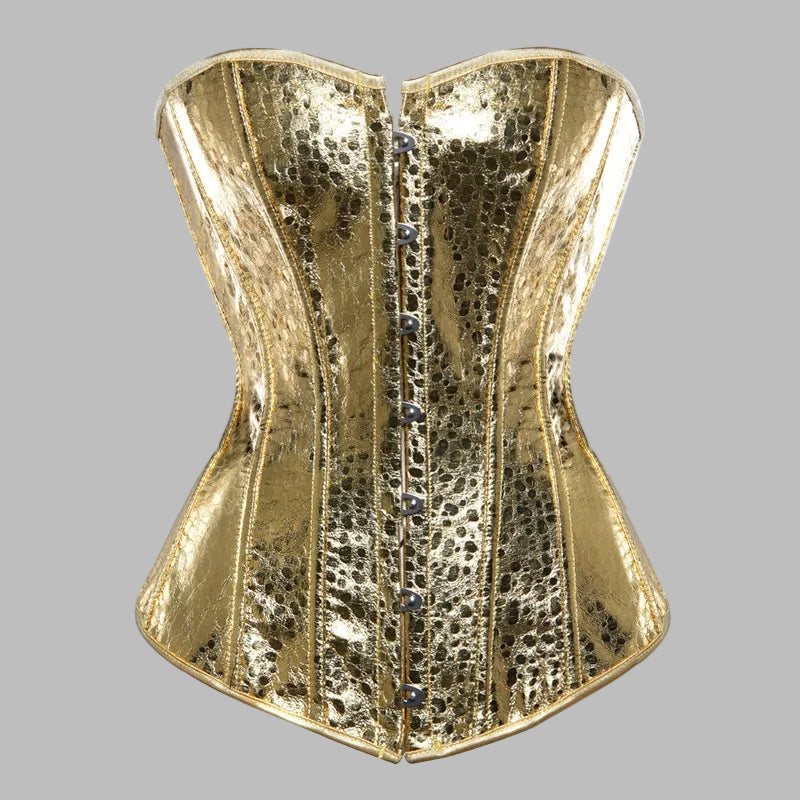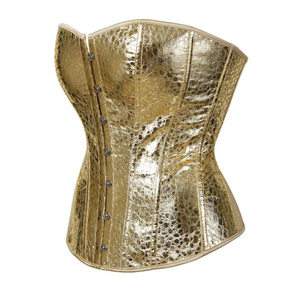 Corsetto Steampunk Oro Metallizzato con Motivo Pelle di Serpente