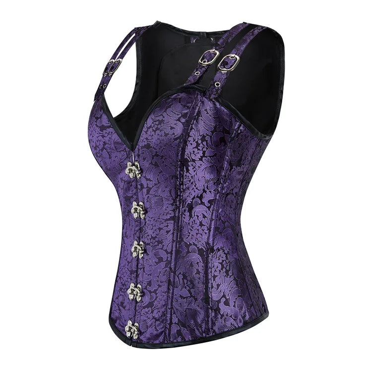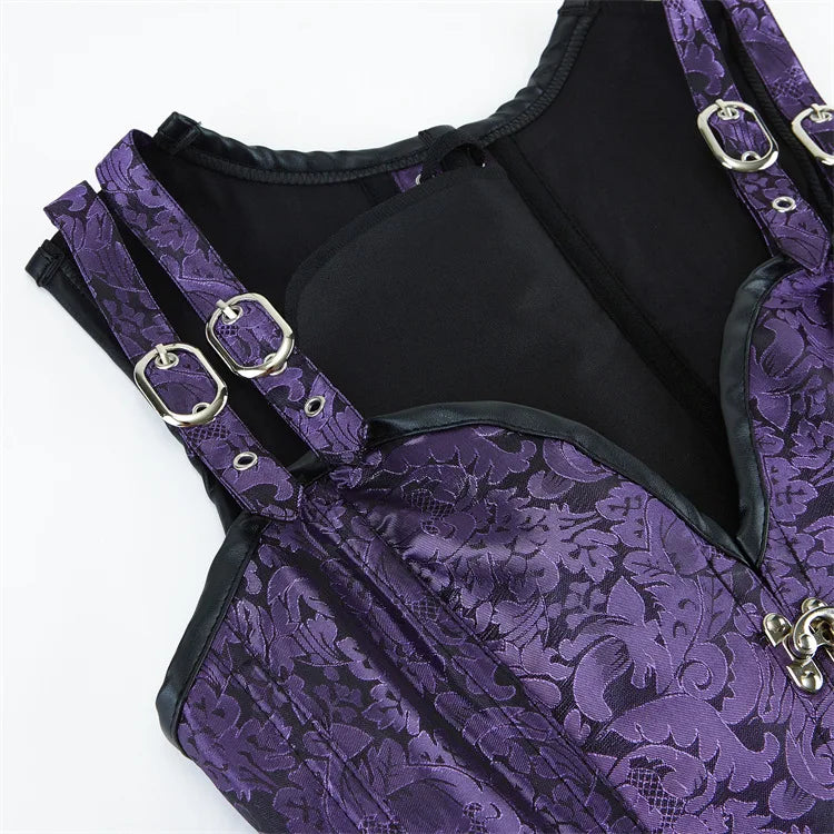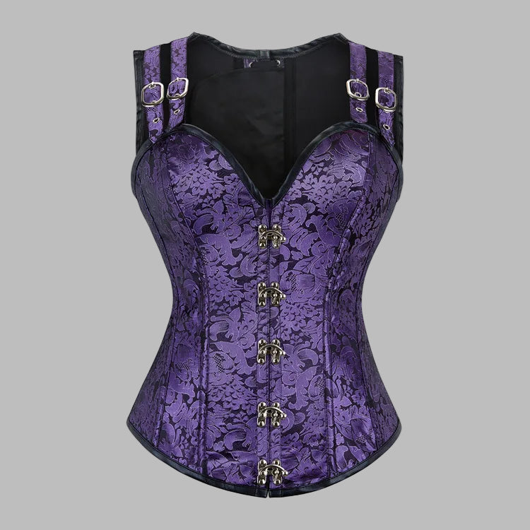 Corsetto Steampunk Viola con Chiusure Metalliche e Spalline