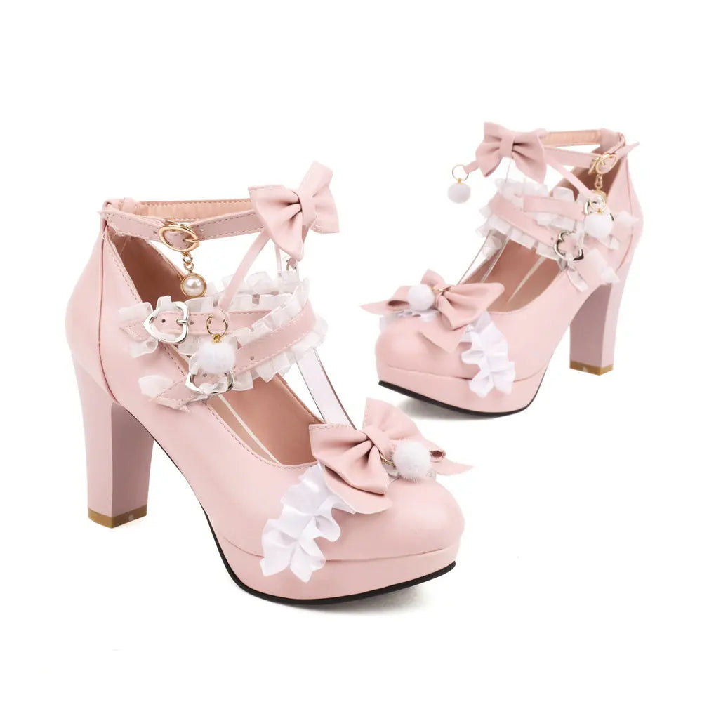 Décolleté Rosa Jirai Kei con Fiocchi e Perle