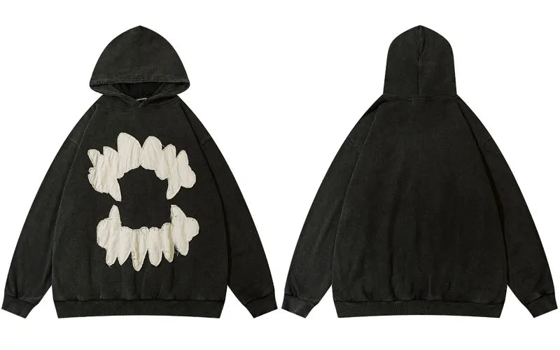 Felpa nera con cappuccio stile grunge - Agressive Bianco