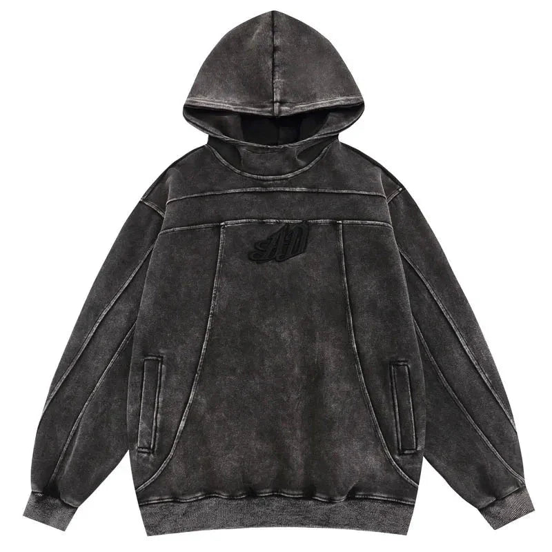 Felpa nera alternativa Grunge con cappuccio Y2K