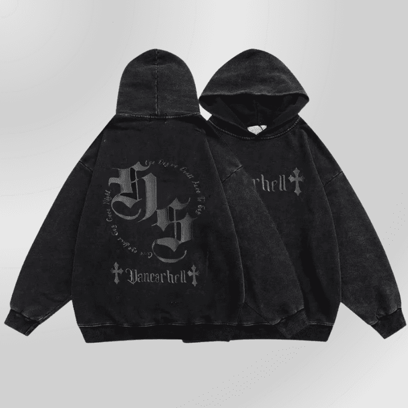 Felpa nera alternativa con cappuccio stile grunge - Cross